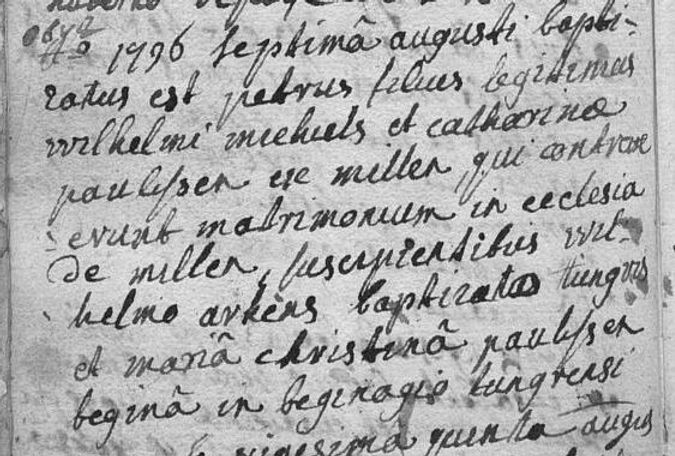 Pierre Michiels werd gedoopt te Genoelselderen op 7 augustus 1796 als zoon van Willem en Catherina Paulissen. Catherina was afkomstig van Millen en aldaar was ze in het huwelijksbootje gestapt met Willem.